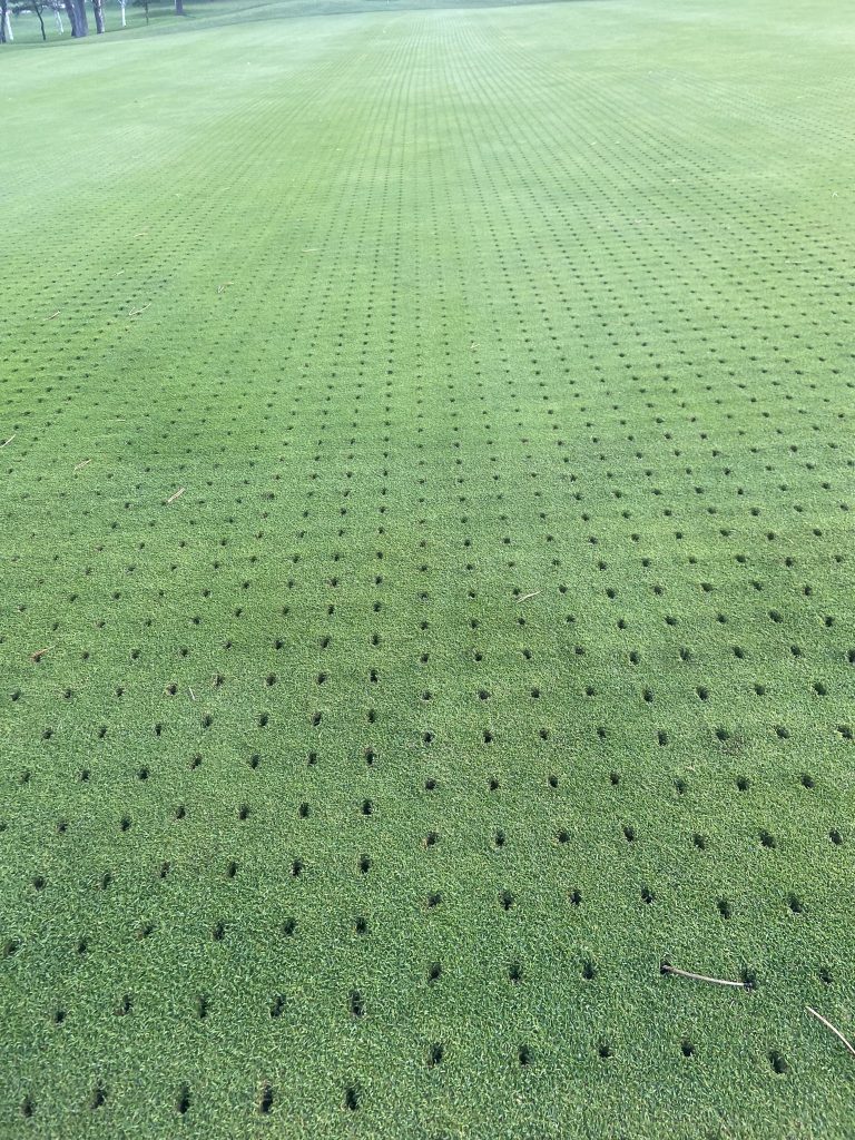 “Going into the season we go much smaller. Tine diameter halves and we move the pattern right out … golfers don’t love aeration, and we are mindful,” continued Chris Yeaman.